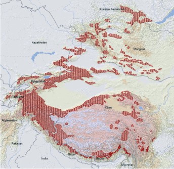 Vhodný biotop pro irbise má v současné době rozlohu okolo 1 320 000 km2, tedy asi dvojnásobek rozlohy území Francie. Nachází se na území 13 států (počítáme-li také pohraniční oblasti Barmy), především na území horských masivů tvořících hranice mezi jednotlivými státy. Nejpočetnější populace irbise se dnes vyskytuje v Tibetu, Mongolsku a Kyrgyzstánu.